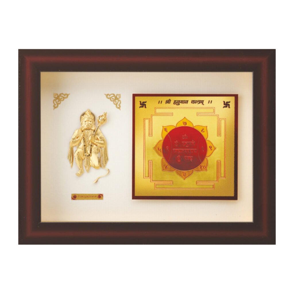 The gold foil Hanuman Ji with Yantra frame captures the divine presence of Lord Hanuman, accompanied by the sacred Yantra symbol. With its intricate design and shimmering golden accents, it emanates the strength, devotion, and blessings of Lord Hanuman. This art piece symbolizes courage, protection, and spiritual upliftment, infusing your space with the divine energy and auspiciousness of Hanuman Ji. Embrace its sacredness and invite the presence of Lord Hanuman into your surroundings.
