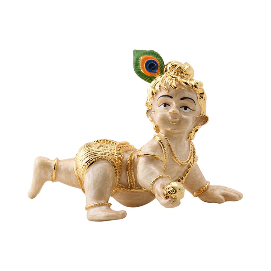 Experience divine grace with Aarya24kt’s Pearl White Laddu Gopal Idol. Crafted with precision, this exquisite gold-plated masterpiece radiates purity and serenity. Perfect for pooja, gifting, and home décor, it symbolizes prosperity and devotion. Add a touch of spirituality to your space with this luxurious, intricately designed Bal Gopal murti.Pearl White Laddu Gopal Idol (11cm x 3cm x 8cm) – Divine Elegance in Gold
