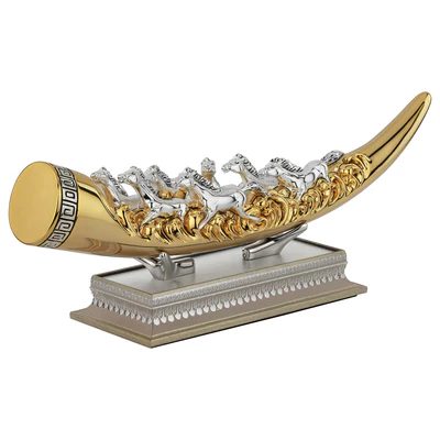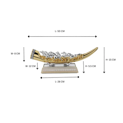 Invite the energy of triumph into your space with the Seven Horses on Tusk Dual Tone masterpiece. Spanning an impressive 50 cm in length, this sculpture captures the raw power and grace of seven galloping horses, a timeless symbol of progress, speed, and victory.